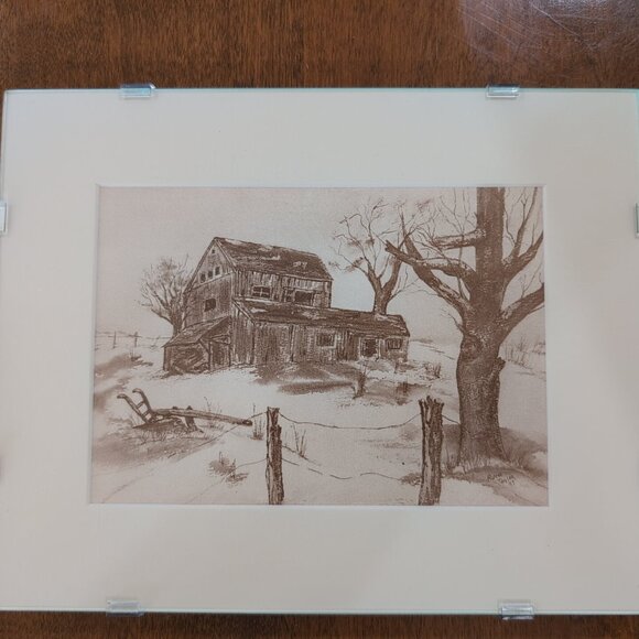 Framed in an edges glass contemporary frame. Original artwork could be reframed into a frame that would match your decorating and desires.
