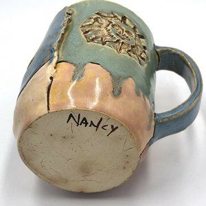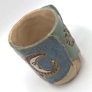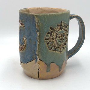 Original Signed Studio Art Pottery Mug Cup Boho Sun and Moon Design Nancy