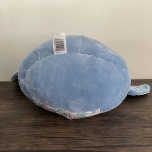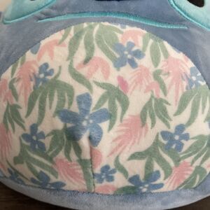 This is a 10-inch Squishmallow plush featuring Disney's Stitch character from Lilo & Stitch. The design includes Hawaiian flower patterns on its belly and ears and was released in 2022. This cute plush toy is recommended for ages 3 and up and is washable. It is part of the character family of Lilo & Stitch. It is in excellent preowned condition and does not include a hanging tag.
