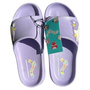 Girls' Squishmallows Purple, Bubba The Cow, slide on sandals, size 4-5 NWT, water resistant and in excellent condition.