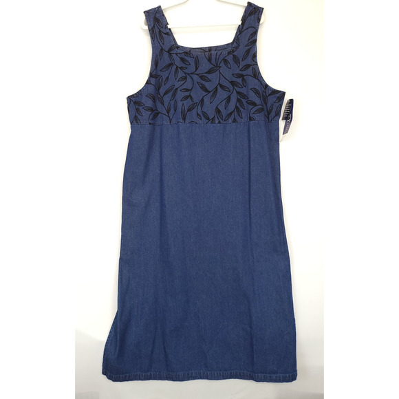 Original TY Wear Denim Overall Maxi Dress Embroidered Women 20 W Blue Modest