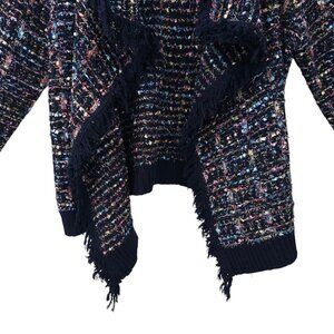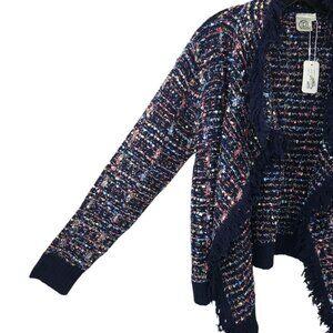 Original USA Open Front Cardigan Women S/M Sparkle Glitz Fringe Ribbon Weave NEW