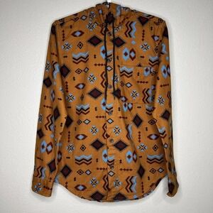 Original Use Men's Brown Aztec Flannel Hooded Long Sleeve Button Down Shirt XS