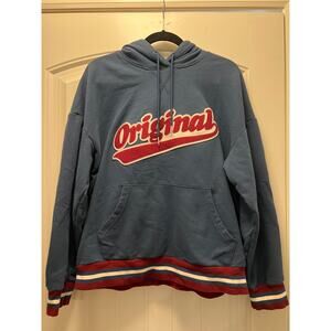 Original Use Men’s Fleece Logo Patch Pullover Hoodie Sweatshirt Size L Blue
