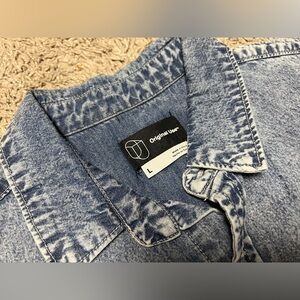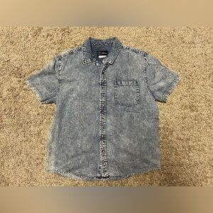 Original Use, Men’s Short Sleeve Button Down Shirt in Denim Blue, US Size: Large