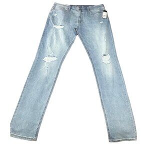 Keywords: men’s jeans, slim taper, Original Use, distressed denim, light wash, 38x36
