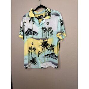 Original Use Men’s White Blue Shirt XXL Palm tree collared button up Rayon