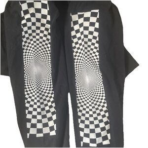Original Use Women XS Boxy Cropped Long Sleeve T-Shirt Black Geometric Checkered