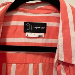 Original Use salmon/coral and White Striped Button-Down Shirt size Large