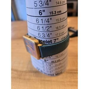 The Original Vintage 1990's LAUREL BURCH Quartz Wrist Watch "Wild Cat" features a gold bezel and case with a blue leather two-piece strap, giving it a luxurious and classic look. This unisex watch has a square watch shape and a 12-hour dial, perfect for those who appreciate vintage timepieces. With its solid caseback and quartz movement, this watch is a stylish and timeless accessory for any casual or formal outfit.