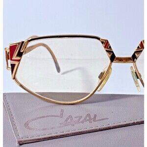 A rare find from the iconic Cazal archives! These authentic vintage Cazal Mod. 238 Col. 370 eyeglass frames feature a striking 1970s geometric design in gold with bold red and black accents. A true statement piece from one of the most collectible eyewear brands.