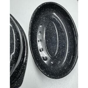 Original Vintage Farmhouse Enamelware Black Speckled Robin Roaster w/ Lid