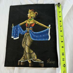 Original Vintage Signed Exotic Woman Painting On Cloth 9.75” x 12.75"