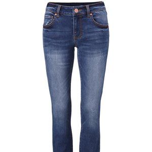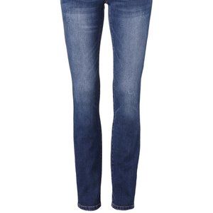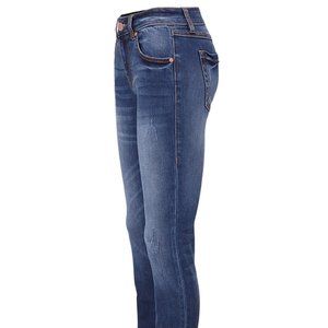 These skinny jeans with a 5-pocket design feature a classic rise and heavy sanding for a faded look with subtle destruction.