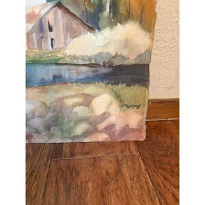 Original Watercolor Landscape Painting By Phyllis Sykes barn water rocks 22x15"