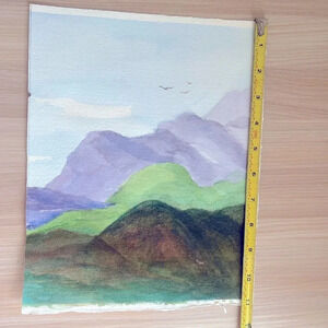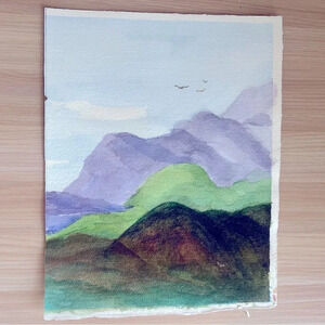 Original Watercolor Painting NWOT Mountains Blue Green Brown