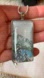 Rectangular pendant with a scenic mountain design. Features shades of blue, green, and white. This unique, one-of-a-kind pendant is an original watercolor painted by me and mounted under glass. It makes a unique statement necklace, quite a conversation piece to wear an original piece of art. The artwork is 2x1 inches. It comes packaged in a box with the artisans label and card a truly unique gift or gift to self.