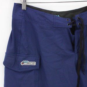 Original Waterman Mens Shorts Blue Swim Trunks Lifeguard Pockets Drawstring 32"