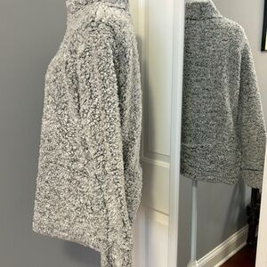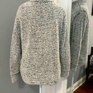 Original Weatherproof Vintage cozy faux fur/sherpa pullover in gray with 1/4 zip closure, long sleeves and two pockets. The pullover is lined with sweatshirt material providing a soft and insulating feel. This pullover is a versatile addition to your wardrobe and perfect for chilly days.