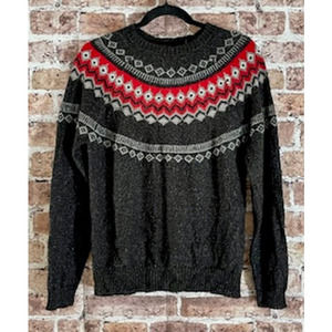 Original Vintage Weatherproof Nordic Style Women's Crewneck Sweater SIZE MEDIUM Color: Black Charcoal with Red White and Gray Pattern in Excellent Pre-Owned Condition, Gently Worn. This sweater says comfort, warm and cozy!