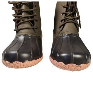 Olive green & Black. NIB MSRP$90 Has duck toes, and fleece lining. Man made upper and lower sole.