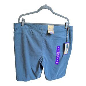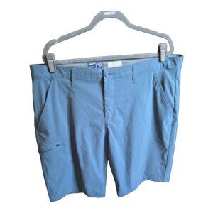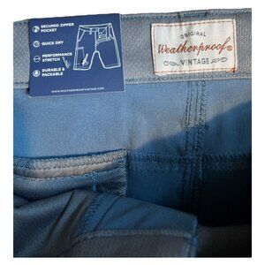 These are a nice pair of Original Weatherproof men's shorts. The color blue is very unique and beautiful. New with tags. 2 zippered pockets and 2 side slot pockets. 95% nylon 5% spandex