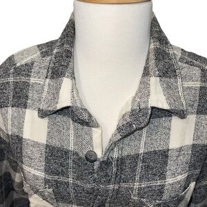 Original Weatherproof Vintage Shacket M Gray White Plaid Button Up Sherpa Lined