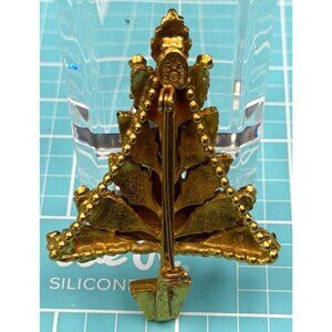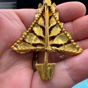Original by Robert Enameled Christmas Tree Brooch Faux Pearls Dangles Signed