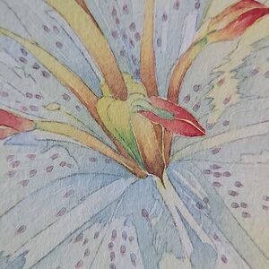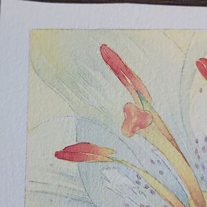Delicate blend of colors in this beautiful watercolor original 6" X 7.5" on art paper. Signed and dated on back, but I can't read the signature. Painting is in perfect condition but odd size.