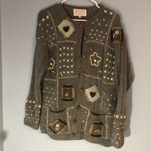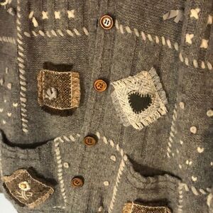 This is a beautiful and originale button up sweater. It’s in EUC with all original wooden buttons present. 2 pockets on the front. No issues to note. A great item! Grab it!