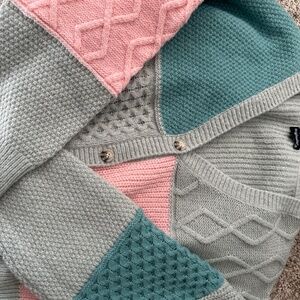 *Lots of texture and fun color blocking in this sweater, cozy and perfect for transition from winter to spring