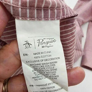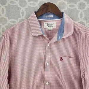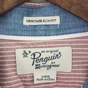 Originals Penguin Musing wear Men's L Button Down Long Sleeve Shirt Pink Stripe