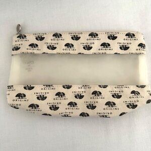 This Origins pouch is made of 55% recycled cotton and 45% TPU, offering durability and eco-conscious functionality. Featuring a transparent panel for easy visibility and a zipper closure, it is lightweight and compact. Branded with the Origins logo.