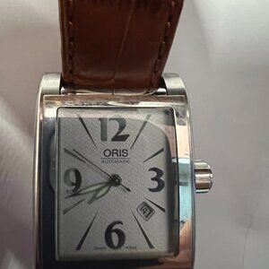 Oris Miles Rectangular Stainless Steel Watch; silver dialand hardly worn