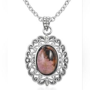 Orissa Rhodolite Garnet, Simulated Diamond Pendant Necklace (18 - 20 inches) in Stainless Steel 5.25 ctw Tarnish Free