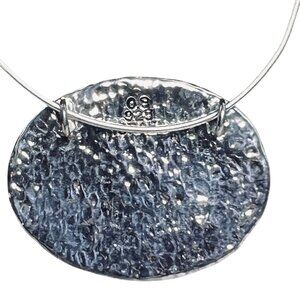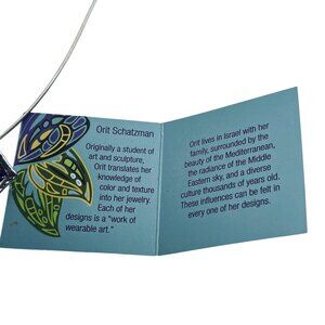 This Orit Schatzman necklace showcases a blend of sterling silver and gold tones, adorned with aqua blue rhinestones. The intricate floral design reflects a vintage charm, making it a captivating piece reminiscent of bygone eras. Its unique craftsmanship speaks to the elegance and sophistication of traditional jewelry artistry.