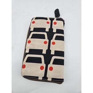 Orla Kiely Large Travel Zip Wallet Wristlet Cars Print Black Cream Red Passport