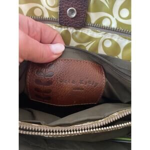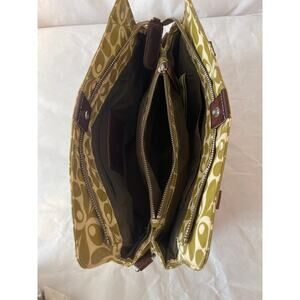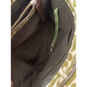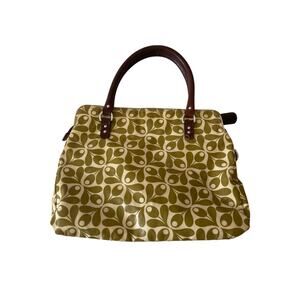 Orla Kiely London Coated Canvas Shoulder Top Handle Bag Green Stem Brown
