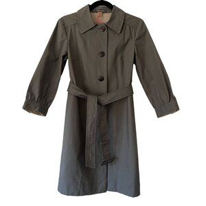 Orla Kiely Size XS Grey Trench Mid Length Coat Belted Button Closure