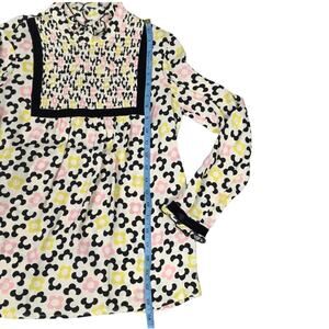 Orla Kiely x Leith Clark Blouse Bib Neck Floral Button Back Velvet Trim Womens 2