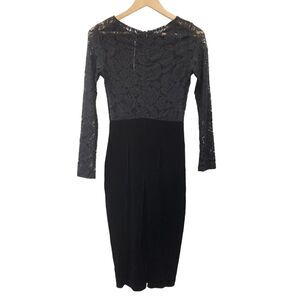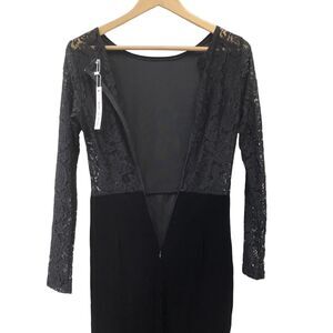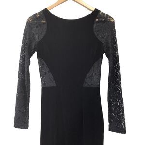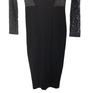 Orlain Dress Womens 8 Midi Black Lace Sleeves Cut Out Waist