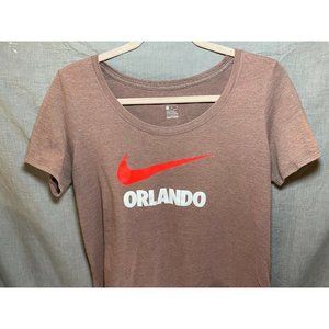 Orlando Nike Shirt Women Medium Brown Logo Spell Out Ladies.