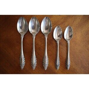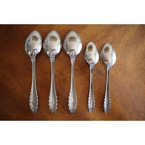 Orleans Silver Black Scroll Floral 5x Dinner Teaspoon Spoon Lot Stainless Japan