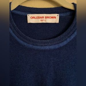 Stylish blue crewneck sweater by Orlebar Brown. 100% Merino Wool. In great condition.