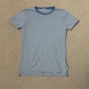 Orlebar Brown Blue White Striped Short Sleeve Tee. Size 12. 100% cotton