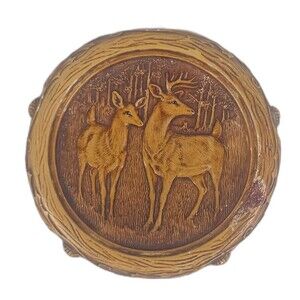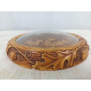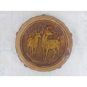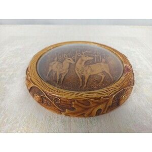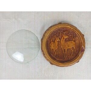 Orn A Craft Vintage Chalkware. Deer Buck And Doe Dish With Glass Dome. Use it as shelf or desk decor. The rim is chipped at one spot and at the same spot the glass dome also have a small chip. Please see photos for reference.
