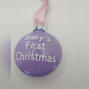Ornament Baby's First Christmas Decorations Plastic Bulb Purple Hand Made