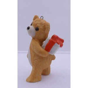 Collectible Hallmark Keepsake Ornament featuring a charming cinnamon bear, fourth in the 1986 series. Crafted in Taiwan from porcelain, this tan bear comes in a box measuring 3" x 2 3/4" x 1 3/4".