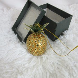 Gold Pineapple Cloisonne Metal Christmas Tree Ornament Food Fruit Decoration
