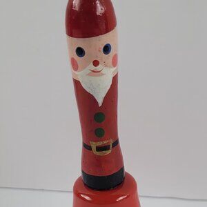 Ornament SANTA CLAUS BELL Wood and Metal Hand Painted Small 4" x 2" Whimsical
